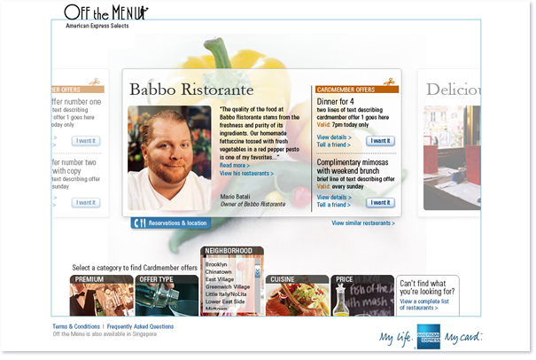 American Express: Off The Menu - Website