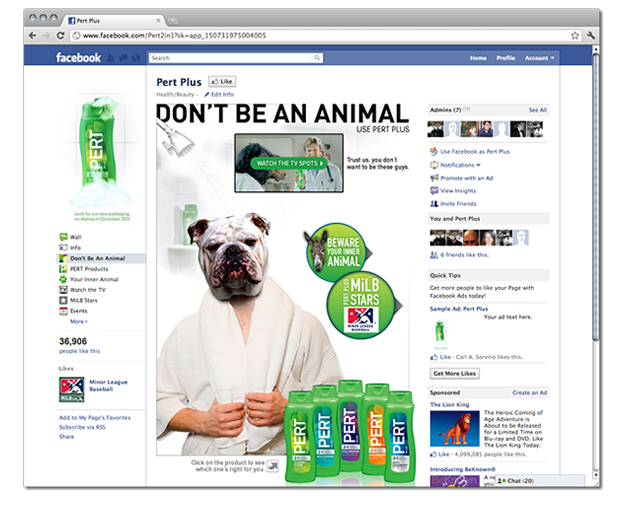 If you don't use PERT you could unleash your inner animal. Don't let that happen. A Facebook presence touts a MiLB partnership, a full product display, The Sudzinator and other games, as well as product giveaway's and daily fan activities, designed to drive participation. The fully integrated campaign also included Print and Broadcast Media creative.